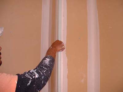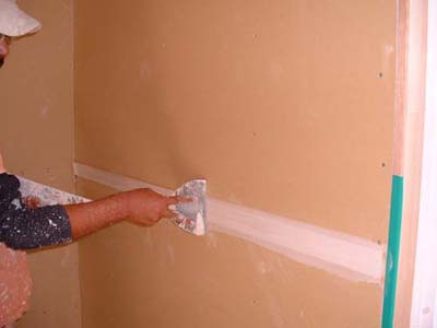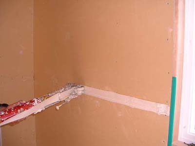 石膏ボードの継ぎ目、インサイドコーナー(入り隅)に張る。上で出来たテープ