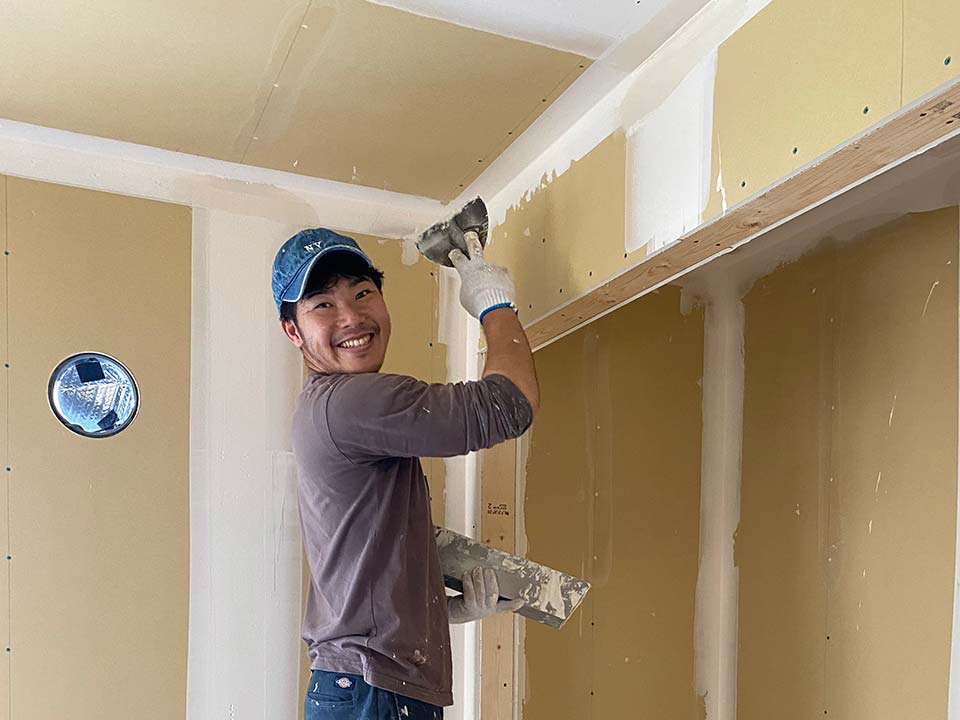 本場アメリカのドライウォール工法を、日本の職人ならではの繊細さで、さらなる高みへと押し上げる熟練の施工技術です。